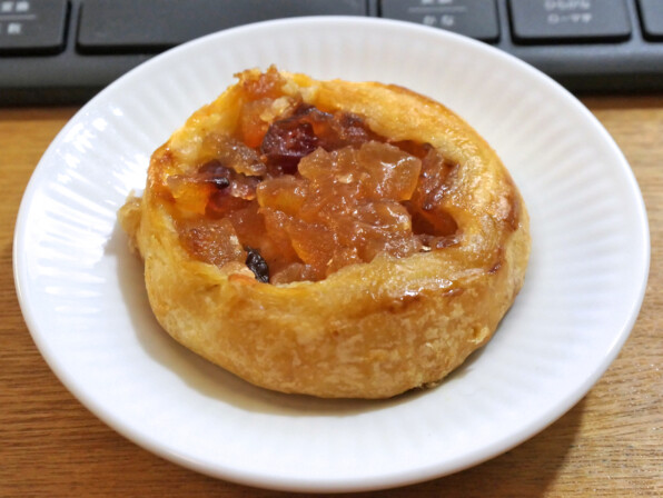 わたしが大好きな、火でとろとろに制圧したりんごと、レーズンやクランベリーがたっぷり詰められたパイです。