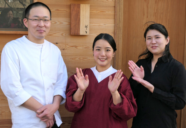 ●店主のはまちゃん=濱口周二郎さん、女将の奈央さん、スタッフの辻 愛美(なるみ)さん、