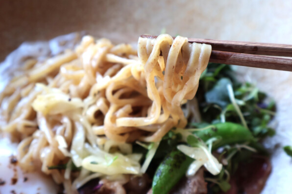 ●まず、麺が全くの特注で新作、全粒粉の麺ということ。