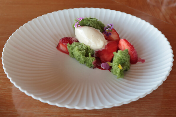 ●ピスタチオのシフォンケーキとよつぼし苺のデザート