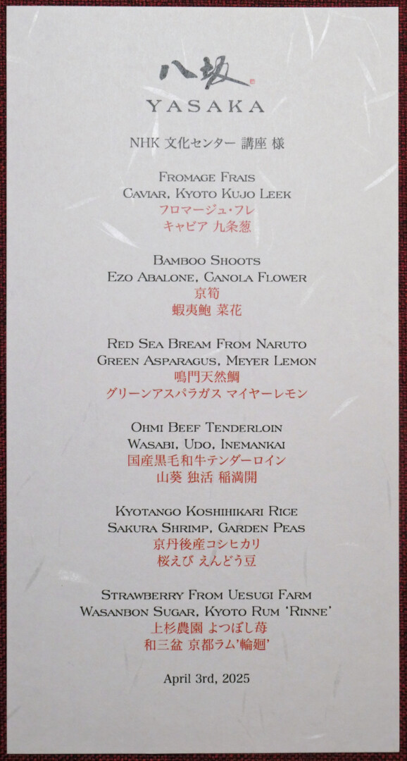 ●NHK文化センター講座の定例会、第1木曜お昼です。「関谷江里さんの京都 美味案内」
