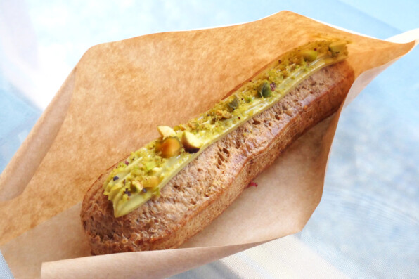 ●エクレアは季節で香味が変わっていくとのこと。これはピスタチオでした。