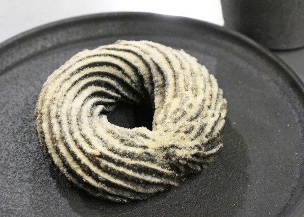 熱々で、中は黒ごまで真っ黒、旨味たっぷりで、そこにきな粉が香り立ち、