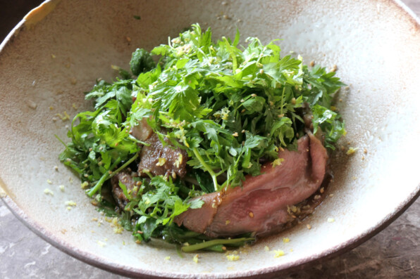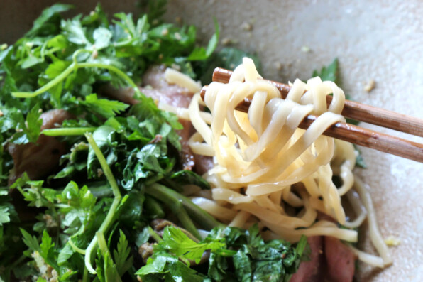 野草の麺に牛肉を足すのではなく、