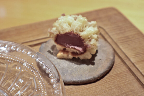 ●お菓子が、つや袱紗。グルテンを出して作ったどら焼き生地の裏巻き。