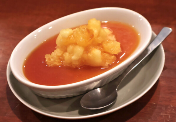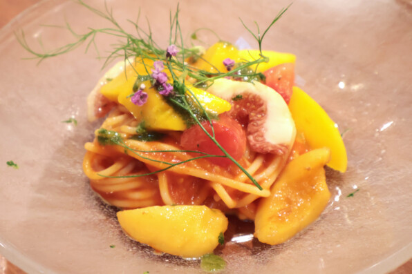 ●コースの最後を彩った、夏の名物、冷たいフルーツのスパゲッティです。