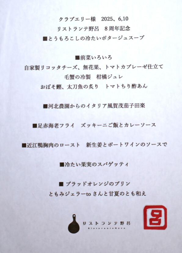 「リストランテ 野呂」です。