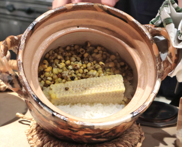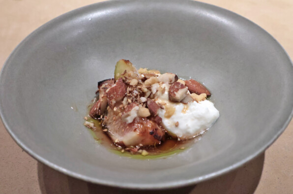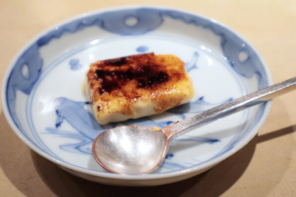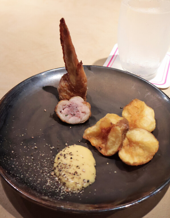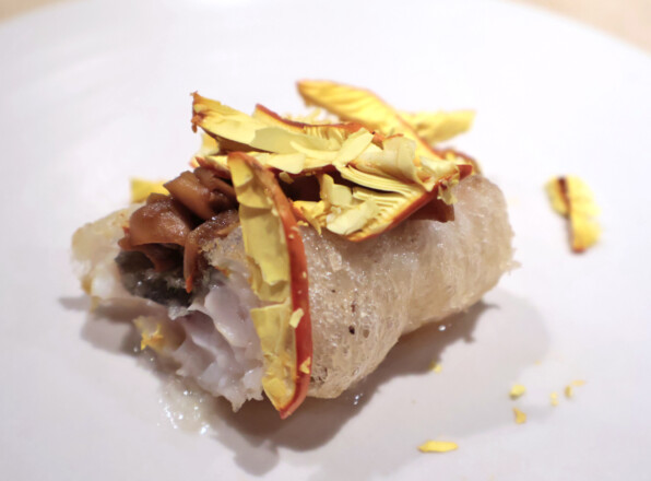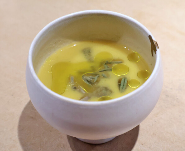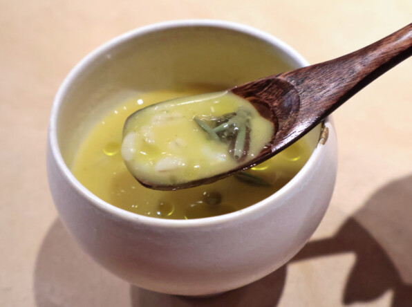 ●尾鷲のえぼ鯛のフリット、たまご茸と大徳寺納豆のソース。