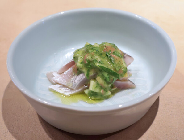 ●赤ワインヴィネガーと塩で〆られた能登の鯵。