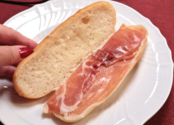 ●フォカッチャ生地で、生ハムとパルミジャーノのサンドイッチ。