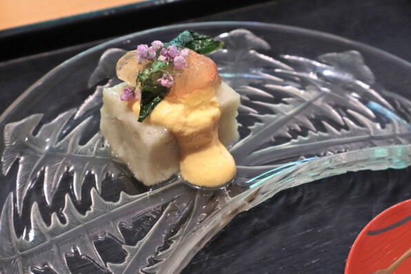 ラリックのガラス皿に美しく調和して、もうほんとーに素敵だった先付の一品。