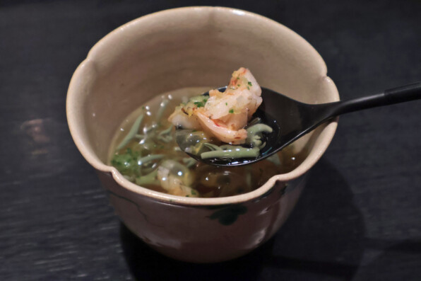熱くも冷たくもなく、常温のおだしは葛でわずかとろみがつけられていました。