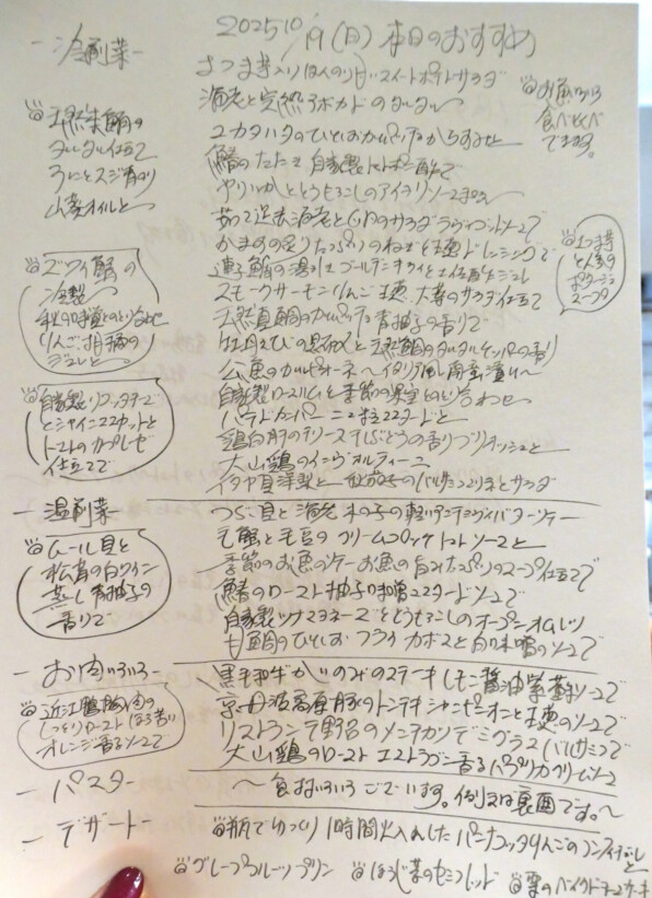 何か、フランスのビストロに来てしまったのかわたし?😂なメニューで迎えられたのでした。