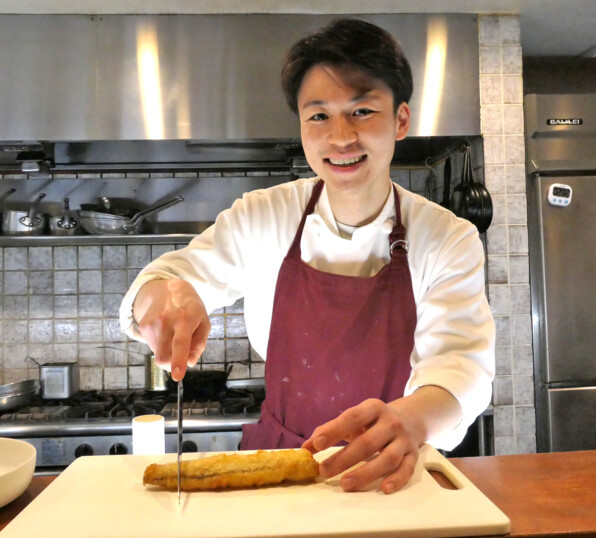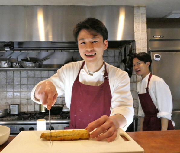 ●かますのフリットを切ってくれる翔ちゃんを撮っていたら、