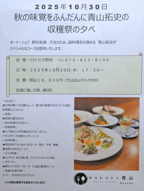「リストランテ 野呂」10月19日(日)20時~ 訪問358回目。