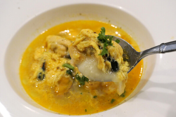 下にかぶらのピュレ。卵とじにしたムールこんなにおいしいか😱
