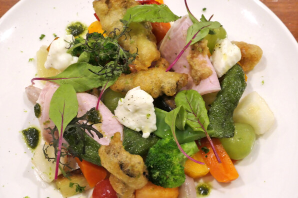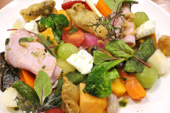 いつもの、野菜とフルーツと魚介のサラダを~と所望したのだけど、