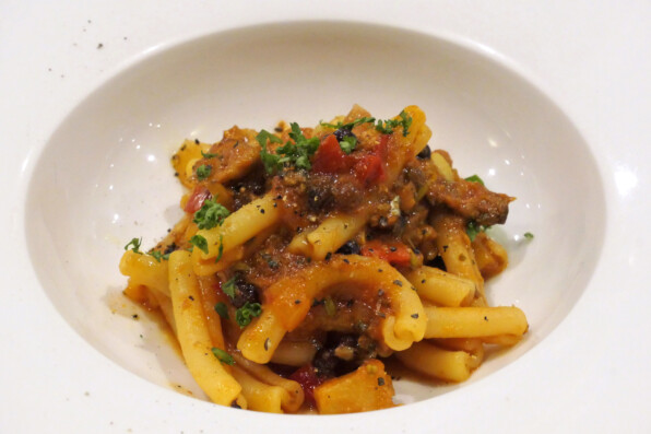 ●ストラッキーノ。バジルソースと、トマトと赤パプリカのソース。