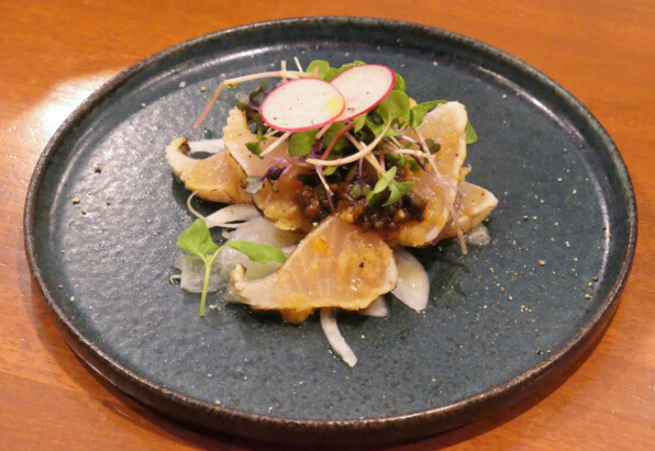 ぱらぱらかかっているのは、まぐろの心臓の塩漬けを削ったもの。