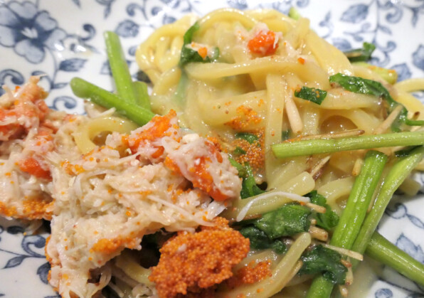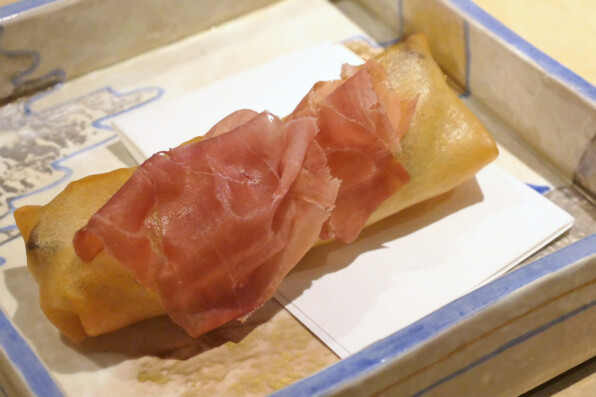 春巻きの皮パリパリパリ、生ハムはふんわり空気を含んで柔らかで、塩気を与えて絶妙な調和。