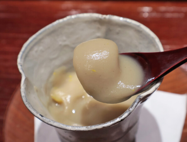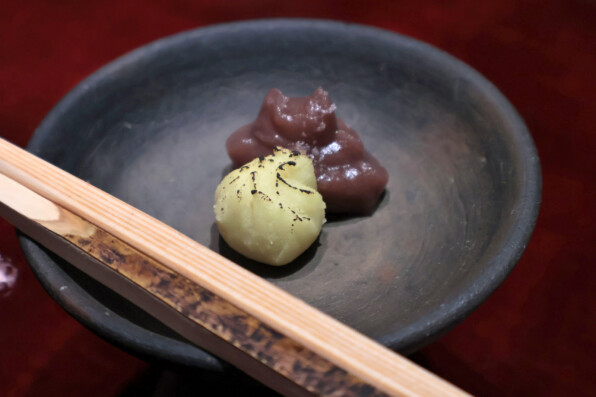 ●そして甘味2は、蒸してうらごした、なめらーかなさつま芋。塩気が効いていました。あんが添えられました。