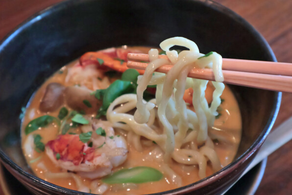 タイのレッドカレ~風の、ココナッツミルクで少し甘い、しかしじんわり辛いスープ。