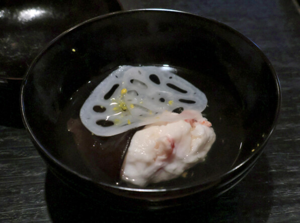 一体何なんだろう、この、ニュートラルなようで、伊勢海老のおいしさを引き立てる、回りのぷるぷるは?と思いつつ食べて、後で種明かししてもらったわけです。