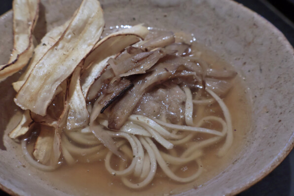 中に、香茸醤油麹で味をつけた原木椎茸、鷹ケ峯ねぎ。