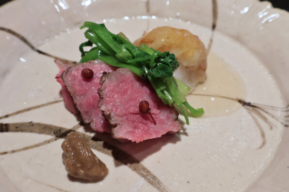グラスフェッドの、全く胃もたれしない軽やかな牛肉、変わらぬおいしさです。赤山椒が香りと食感を与えて粋です。