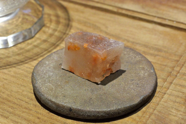 岐阜の玉泉堂酒造 「醴泉(れいせん)」の純米大吟醸「波紋」が食前酒にひと口供され、お料理スタートです。