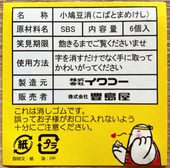●ちなみに小鳩消しゴムには、こんな表示が添えられていて、サイコーです\(^o^)/