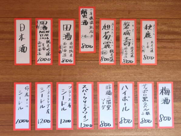 ●お料理はこんなラインナップ。串カツと一品料理が4種類。