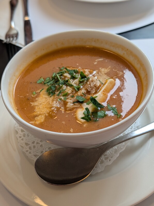 野菜たっぷり、フロマージュも入った熱々スープで、丼の大きさ。