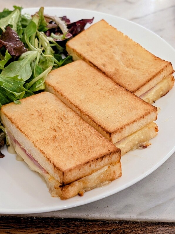 クロックムッシューをメニューに発見、りんごタルト注文後にこれを追加しました。お菓子だけでなく、軽くていいから、何か食べる必要がありました。