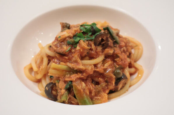 ●初めに雪ノ下にんじんのポタージュ、最後のパスタはこれ。
