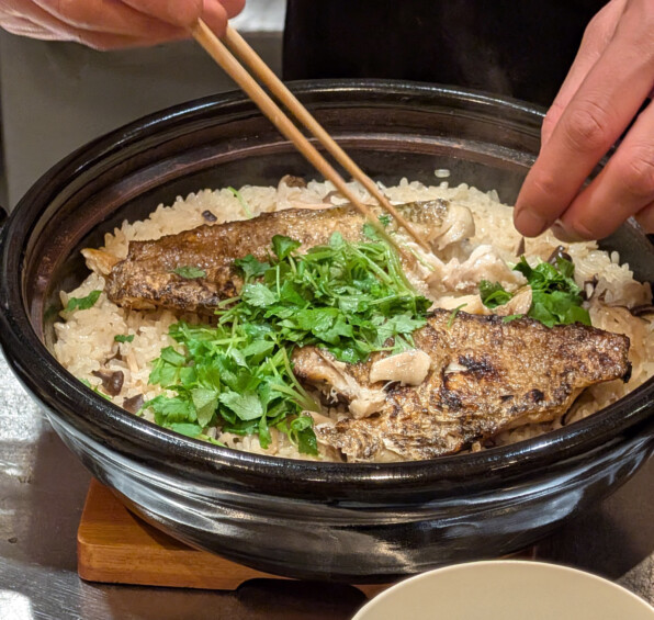 プレゼンののち、のどぐろをほぐしてご飯と混ぜ合わせて、熱々のふかふかをよそってくださいました。