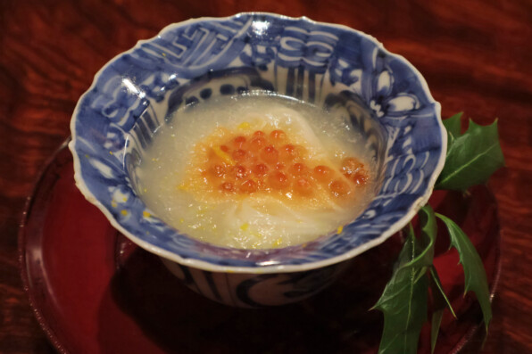 いくら、その下にいくらを酒で洗って裏ごしして、太白胡麻油と合わせて乳化させた、とろとろの層がありました。何これおいしいと驚愕。