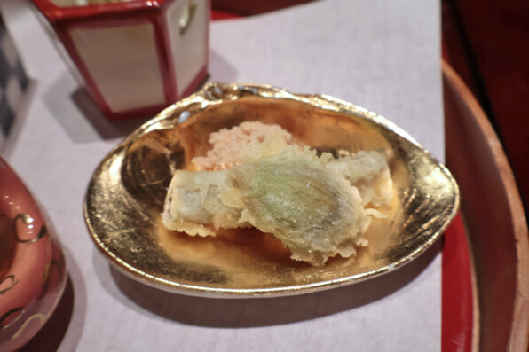 ●(はまぐり器)ふきのとう、わかさぎの天ぷら/たらの子生姜炊き
