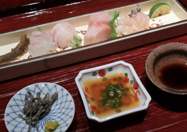 ●お造りは、明石の鯛、長崎の鰤、明石の伊勢海老。