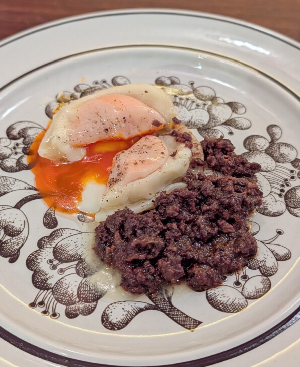 そこに、土佐あか牛の赤ワイン煮込みをたっぷりとからめもって食べるのです。ああもうずるいおいしさとはこれのこと😱