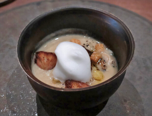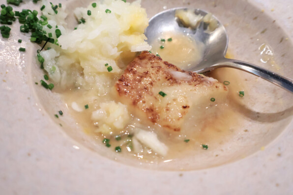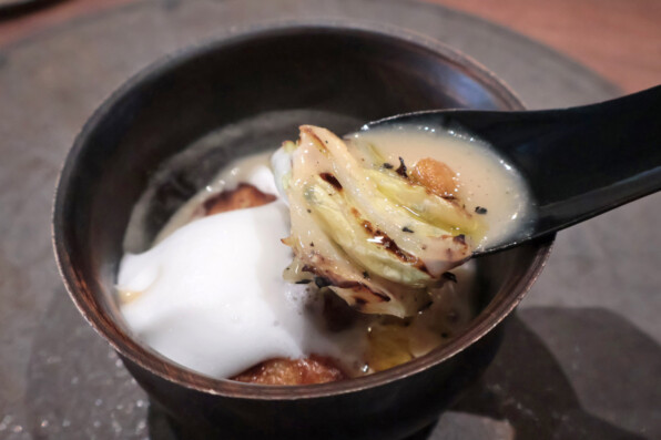 どのパーツもかんぺきと思いました。キャベツもじゃがいももものすごく香ばしくて貝もそのスープも旨みたっぷり。ひと皿目から旨旨旨😱とうなりました。
