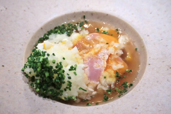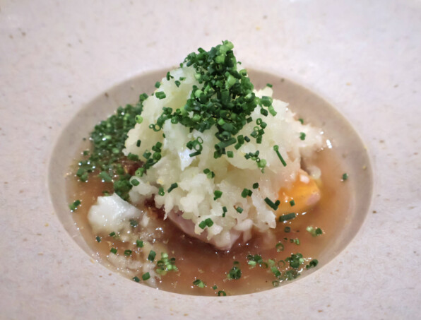 ぶりそれだけで美味なのに、オリーヴオイルで風味付けした大根鬼おろしが旨さを引き立てて、さらに下にとろりとした口当たりの大根餅が控えていて驚きがありました。