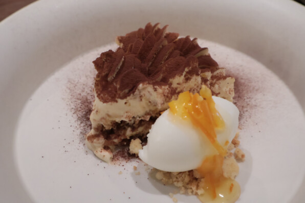 ●食後はティラミス、ミルクソルベ(+だいだいのコンフィチュール)を添えたものが供され、食後の飲み物、小菓子までしっかり味わいました。