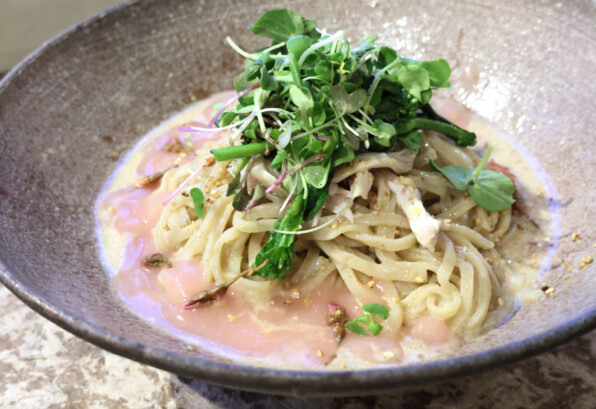 春キャベツのまぜ麺のつもりで出かけたら、なんと、桜のまぜ麺なんてメニューもあるではないの😱
