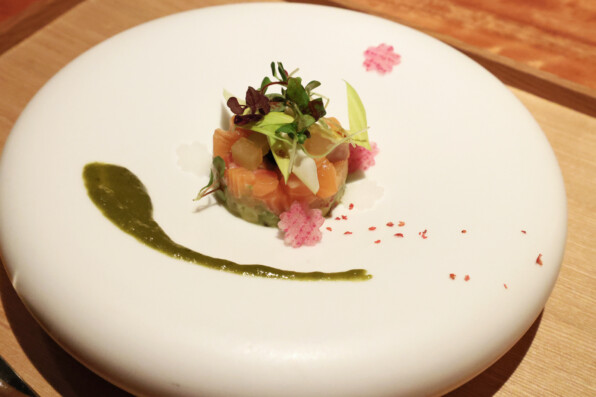 桜ます、アヴォカド、ぶんたん。菜の花ソース。