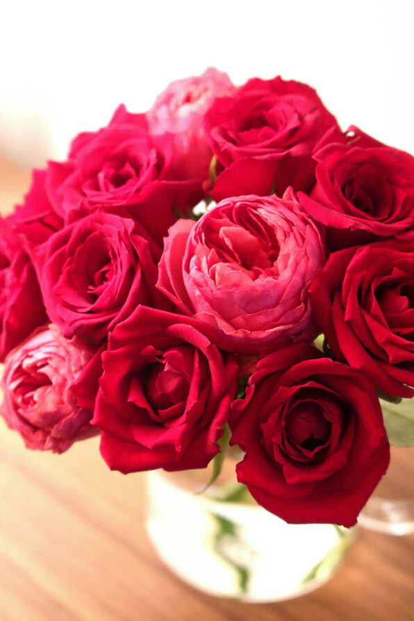 ●珍しくピンクのバラ。お世話になっている方のお嬢さんの誕生日に用意したもので、お花は八百一本館の2階の「