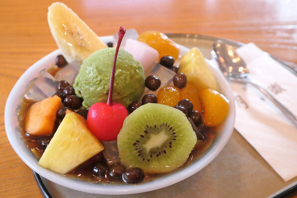 ●「月ヶ瀬」さん堺町店で抹茶クリームみつ豆 1100円です。