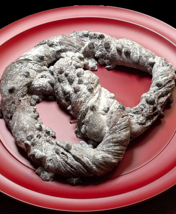 プレッツェルの形をしながら実はデニッシュで、ショコラの香味がとても豊か。