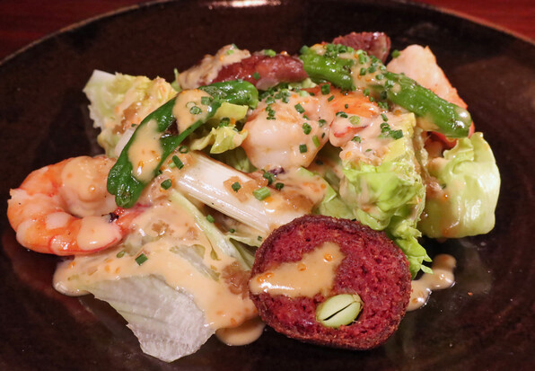 ●これはスペシャルにお願いして作っていただいたもので、鴨のコンフィをばらして、サラダ仕立てにしたもの。