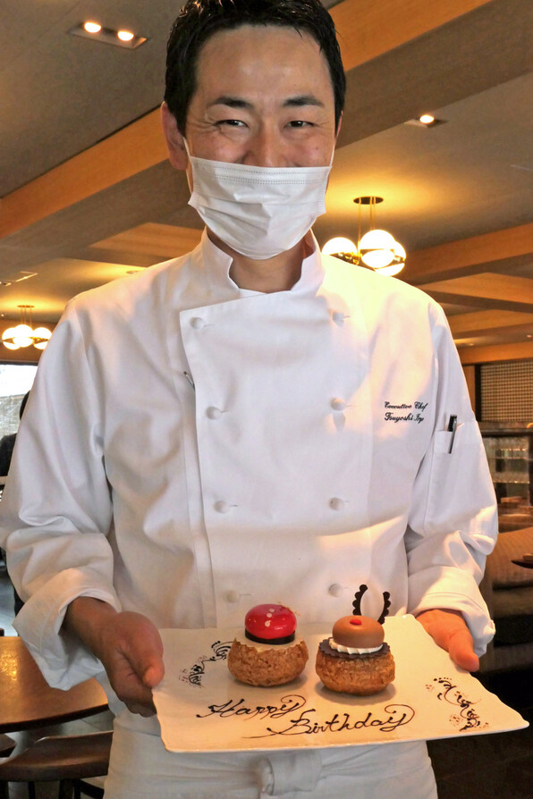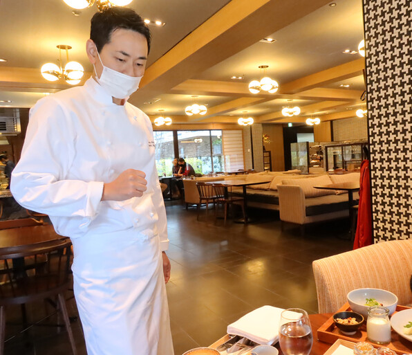 ●総料理長の井料剛さん、今回も4部屋をまめに回って皆さんにお話をしてくれながら、よどみなく料理も出してくださいました。常に冷静沈着、余裕の風情です。そして朝昼晩いつ会ってもコックコートが絶対にきれいなの(^o^)☆☆☆